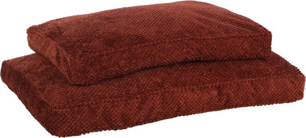 Laat je harige vriend neerploffen op dit zachte kussen Erbel in warme terracottakleur! Gemaakt van zacht textiel en gevuld met een mix van polyester- en schuimvlokken voor ultiem comfort. Met afneembare hoes voor makkelijk wassen en antislip bodem voor extra stabiliteit. Laat je viervoeter genieten van Europese kwaliteit!